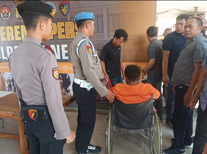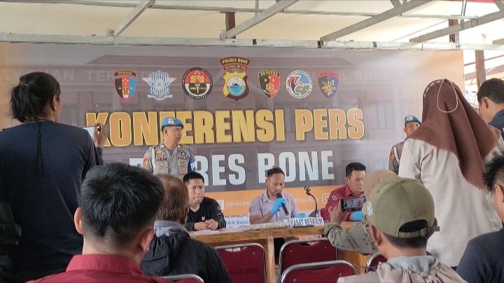 PJ Kasat Reskrim Bone IPTU DR. Adi Asrul .dalam komprensi pers di kantor Mapolres Bone 15 November 2023 pukul 13.30 WITA
