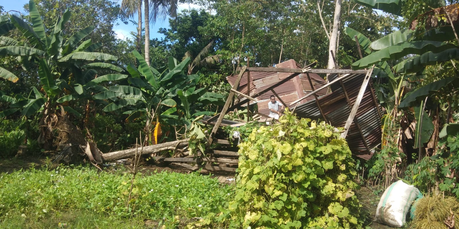 “Waktu bersamaan kandang sapi pun, milik Haripuddin tepatnya dibelakang rumahnya juga tertimpa pohon” jelas kades Risman