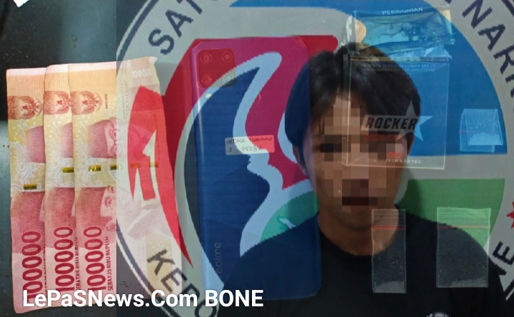 Diketahui bahwa lelaki bernama alias IK (23) warga Dusun 1 Latobang, Desa Patimpeng, Kecamatan Patimpeng, Kabupaten Bone digelandang ke mapolres Bone dengan perkara Narkoba jenis Sabu.