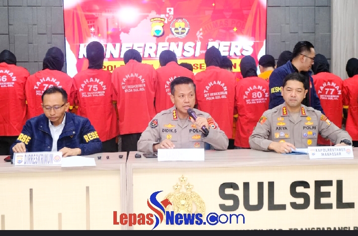 Hal tersebut disampaikan dalam Konferensi Pers Polda Sulsel yang digelar di Lobi Mapolda Sulsel, Kamis (04/09/2025). Konferensi pers dipimpin oleh Dirreskrimum Polda Sulsel Kombes Pol Setiadi Sulaksono, S.I.K., M.H., bersama Kabid Humas Polda Sulsel Kombes Pol Didik Supranoto, S.I.K., M.H., serta Kapolrestabes Makassar Kombes Pol Dr. Arya Perdana, S.H., S.I.K., M.Si.